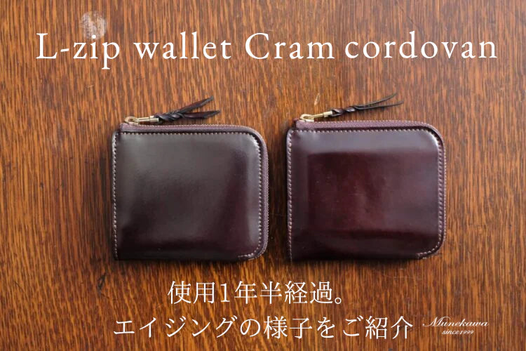 エイジング(経年変化)したホーウィンコードバンの風合い 1年半経過したL字ファスナー財布 Cram