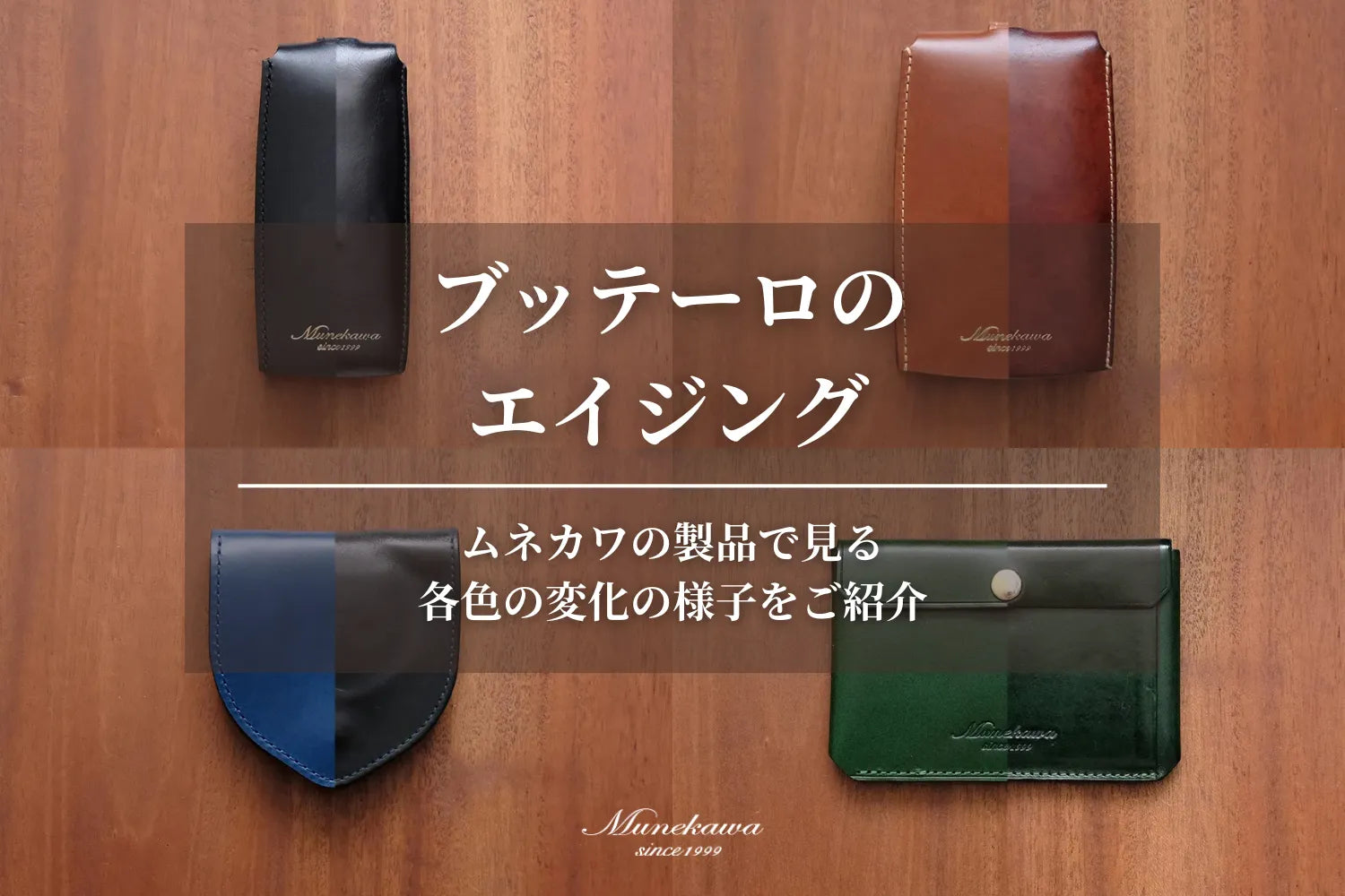 ブッテーロのエイジング ムネカワの製品で見る、各色の変化の様子をご紹介