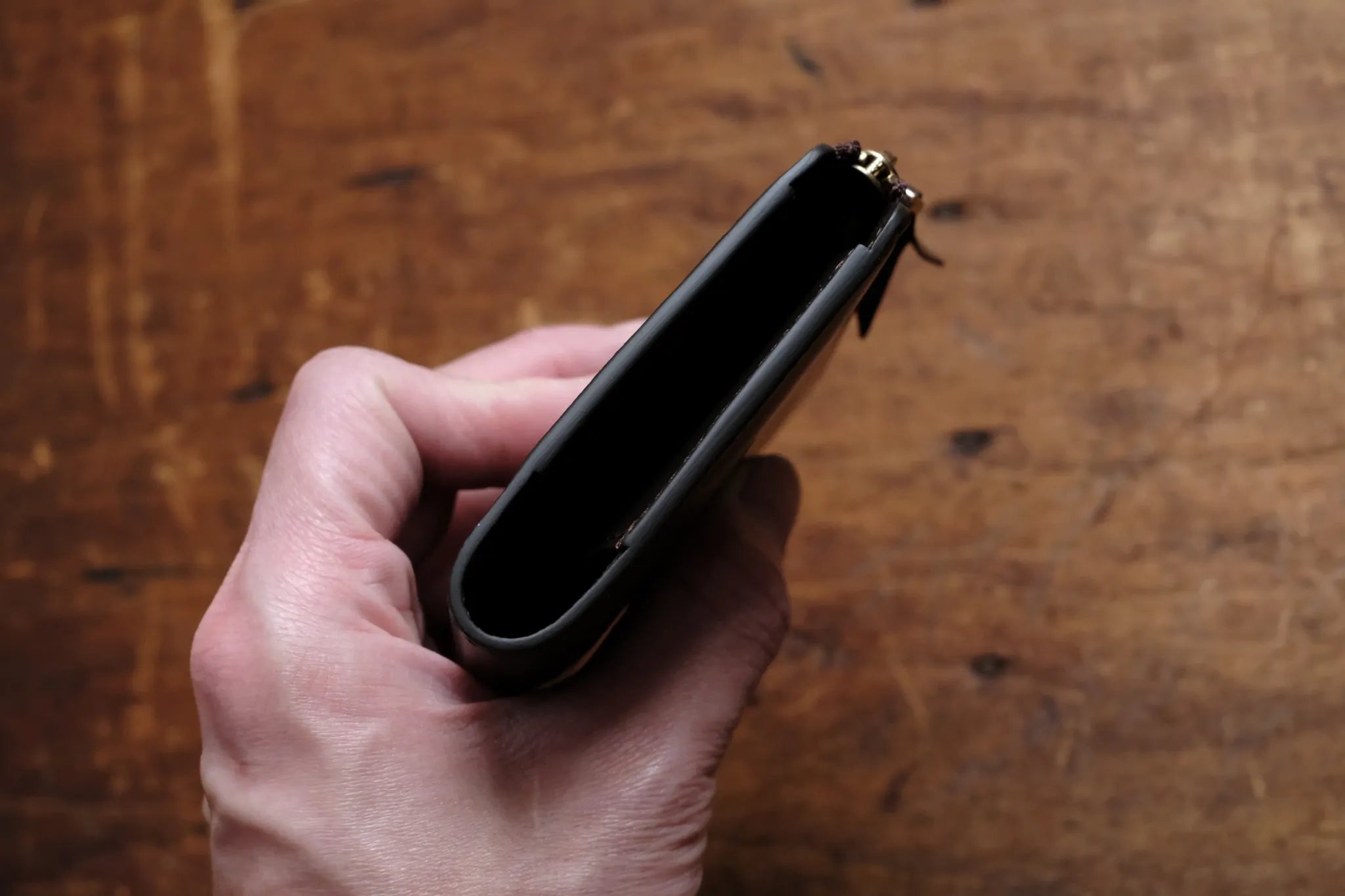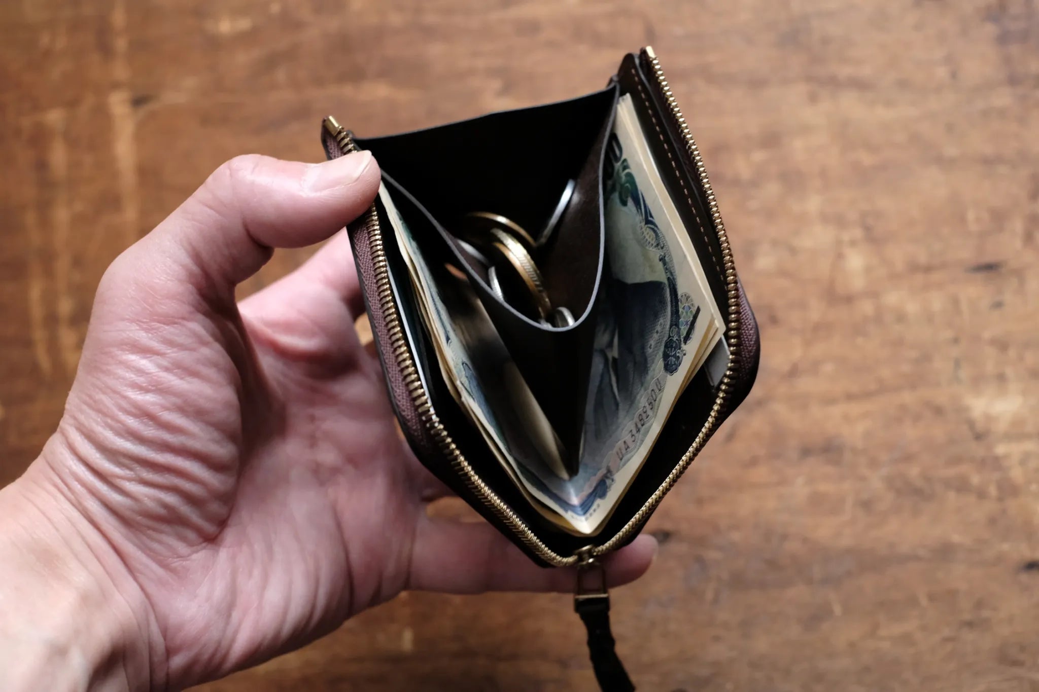ミニサイズのL字ファスナー財布特有の「ファスナーがお札を噛む」リスクを考慮して、お札の収納方法にも工夫を凝らし、手のひらに収まるコンパクトサイズながら、使いやすさにもこだわりました。