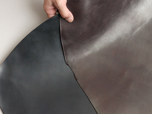 Munekawa オリジナル高温・高圧プレス加工染料を使用している為、革の個性を失わず、透明感のある仕上がりが魅力。時間をかけ鞣す事で、コシのある丈夫な革になります。エイジングも美しく、長く楽しめる素材です。