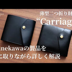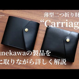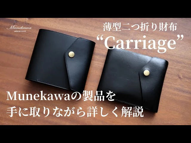Carriage is a slim bi-fold wallet created in response to a request for a compact wallet that can also hold cards.