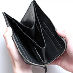 I want a compact wallet. I want to neatly store and treasure my wallet and cards without damaging them. This L-shaped zipper long wallet was created to fulfill these two desires.