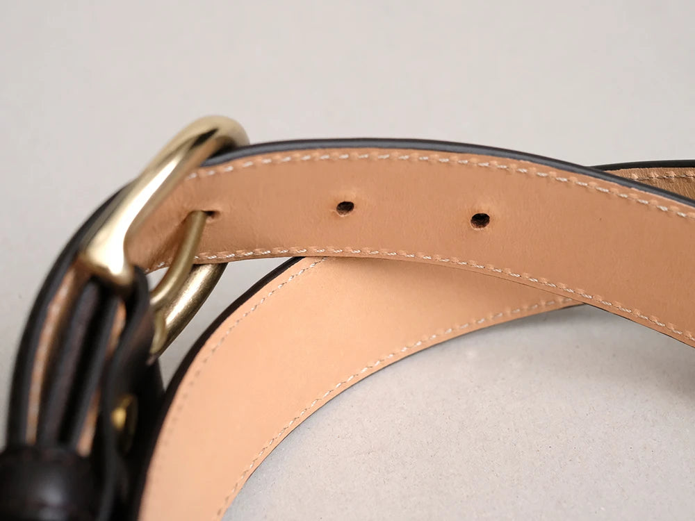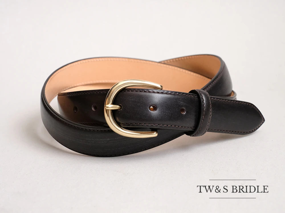 Combining a brass buckle with bridle leather, this simple design allows you to enjoy the elegant texture of the material and make it long-lasting.
