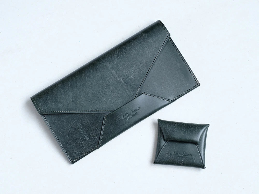 170 年以上の歴史を誇るイギリス老舗タンナー THOMAS WARE&SONSのブライドルレザーを使って製作した封筒型の長財布「Encase(エンケース)」とMunekawa史上『最小』のコインケースのセットです。