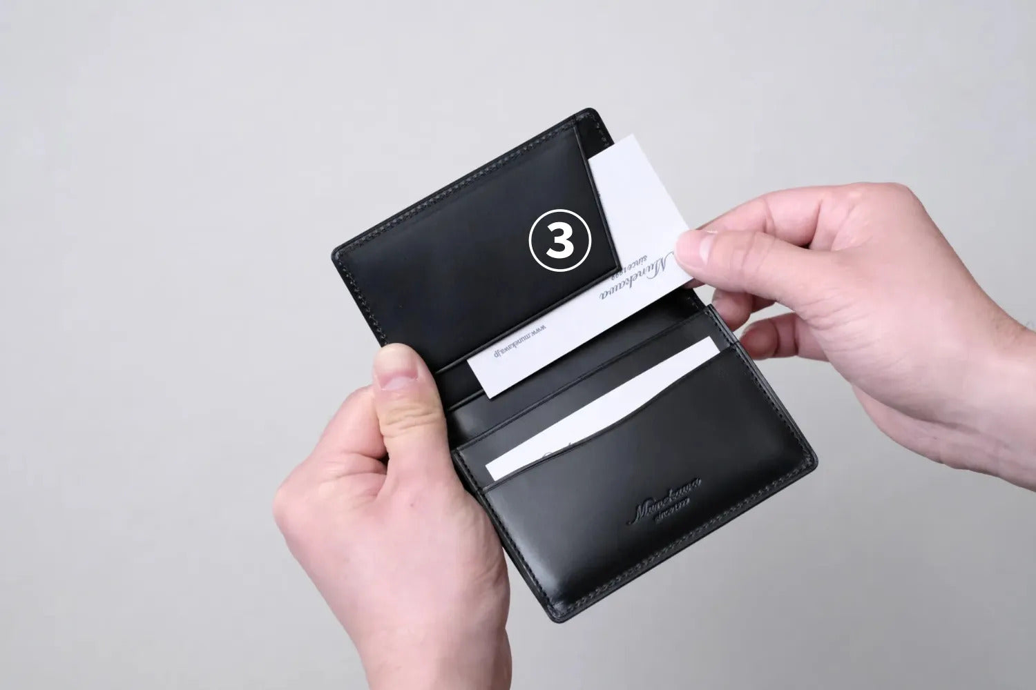 名刺交換の頻度が少ない方は、ICカードやクレジットカードなどを入れてマルチカードケースとしてもお使いいただけます。