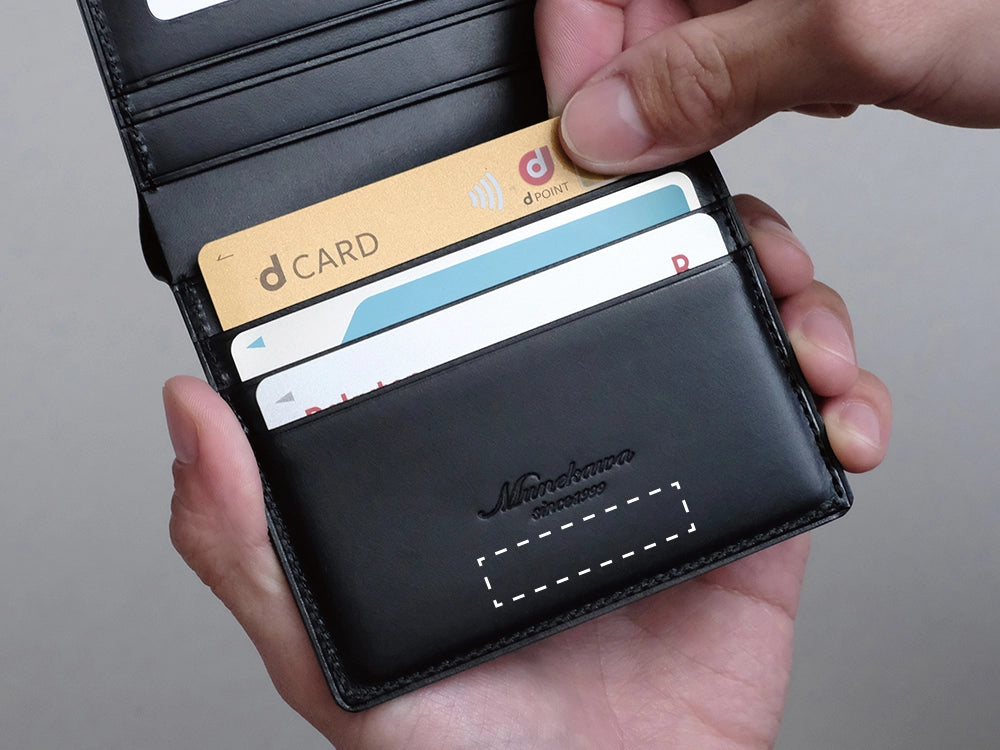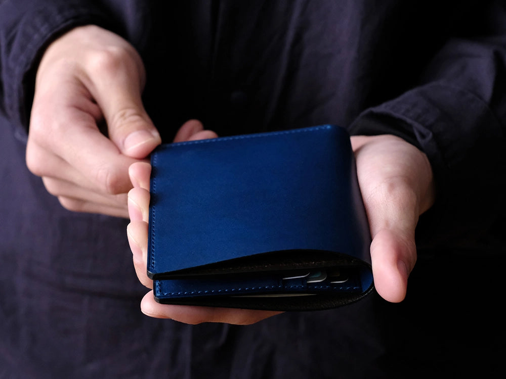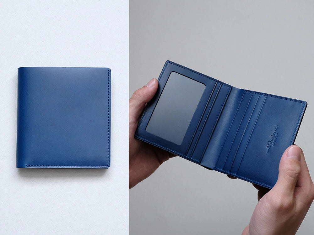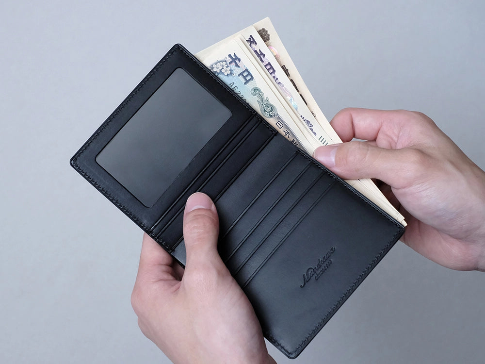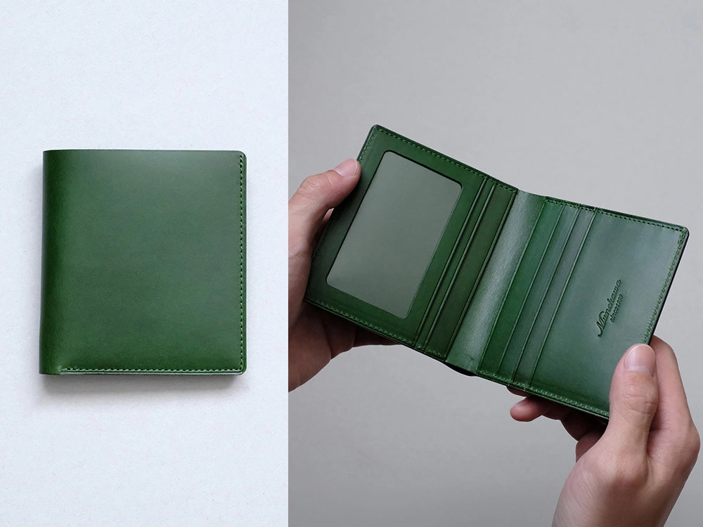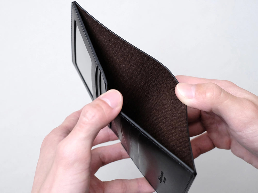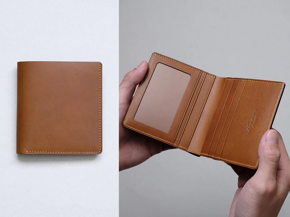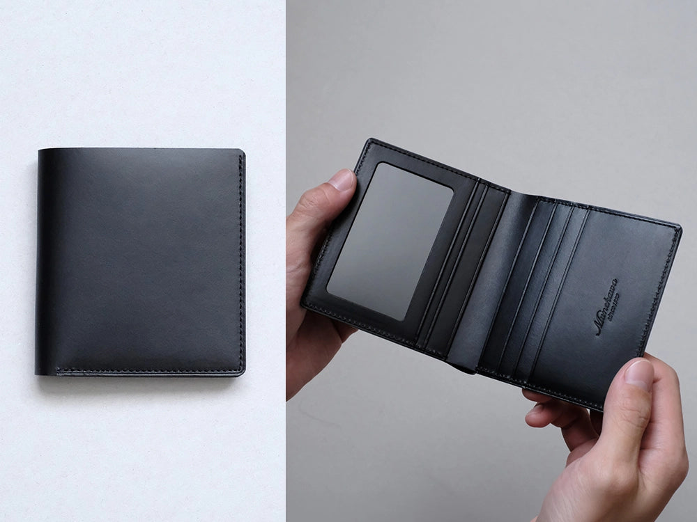 「IDカードが見える窓付きの二つ折り財布がなかなか見当たらない」。百貨店の売り場に立つ販売員の方の一言から、この財布の製作は始まりました。特にシンプルさを求める海外のお客様のニーズに応え、Munekawaらしい機能美を詰め込んだ新しい二つ折り財布が完成しました。