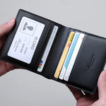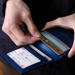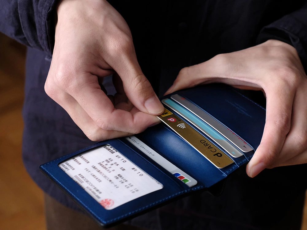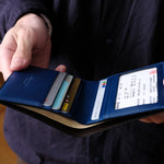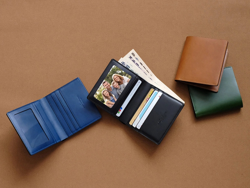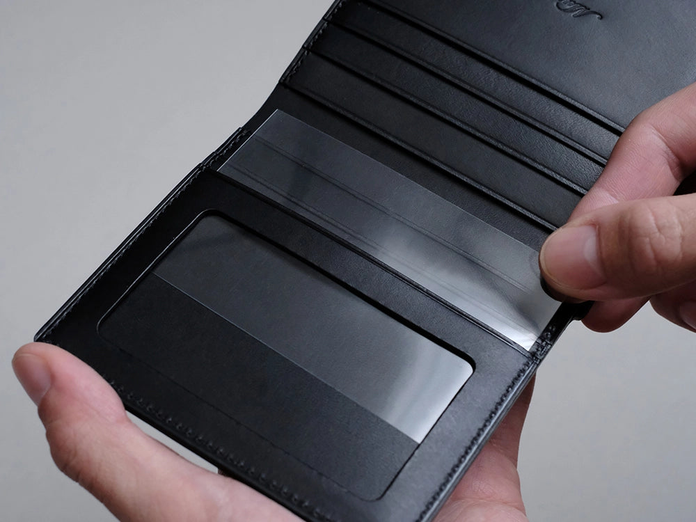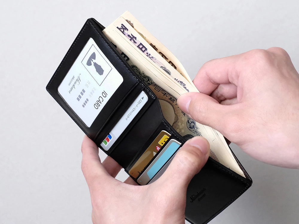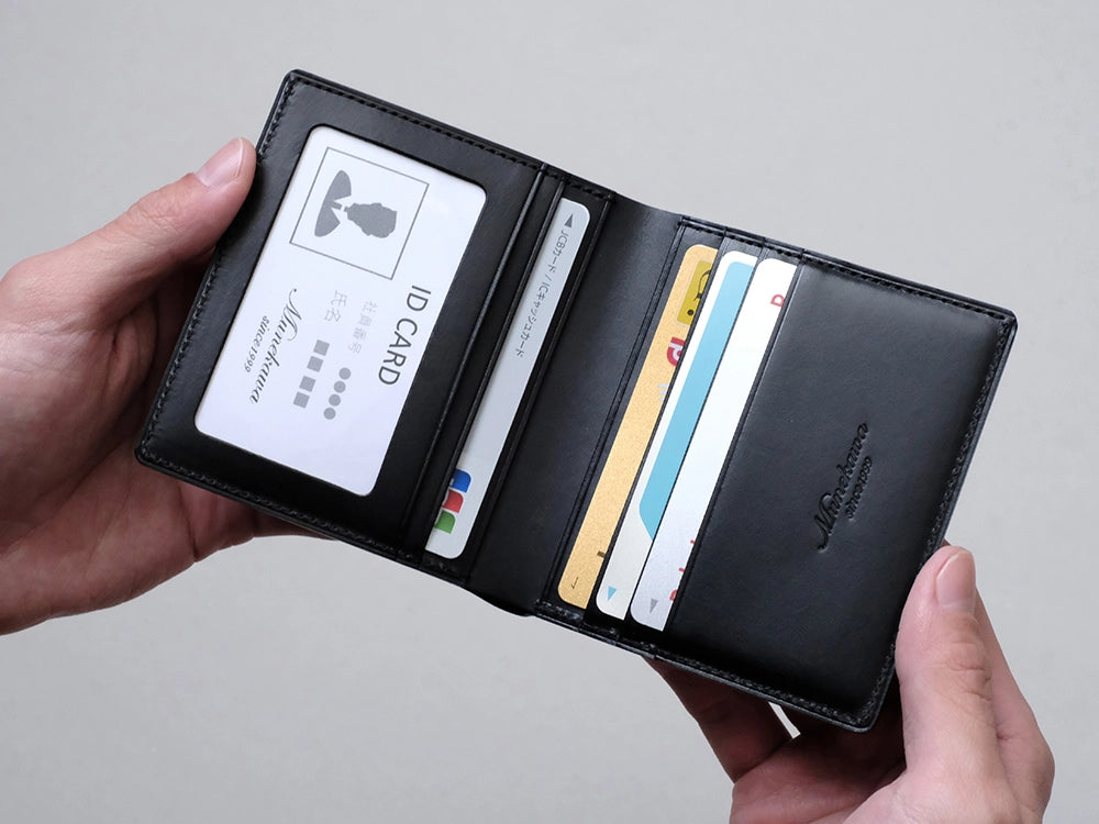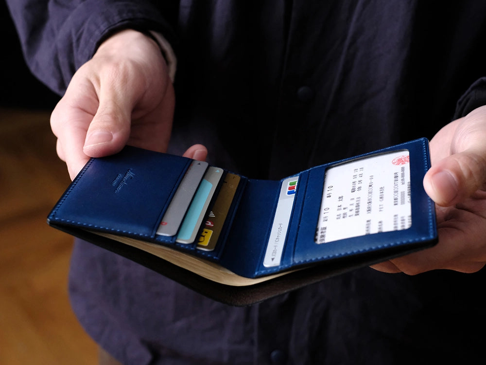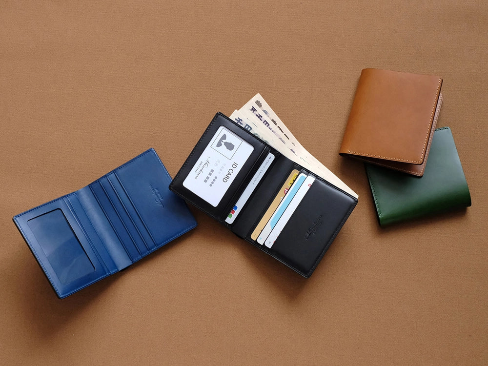「IDカードが見える窓付きの二つ折り財布がなかなか見当たらない」。百貨店の売り場に立つ販売員の方の一言から、この財布の製作は始まりました。特にシンプルさを求める海外のお客様のニーズに応え、Munekawaらしい機能美を詰め込んだ新しい二つ折り財布が完成しました。