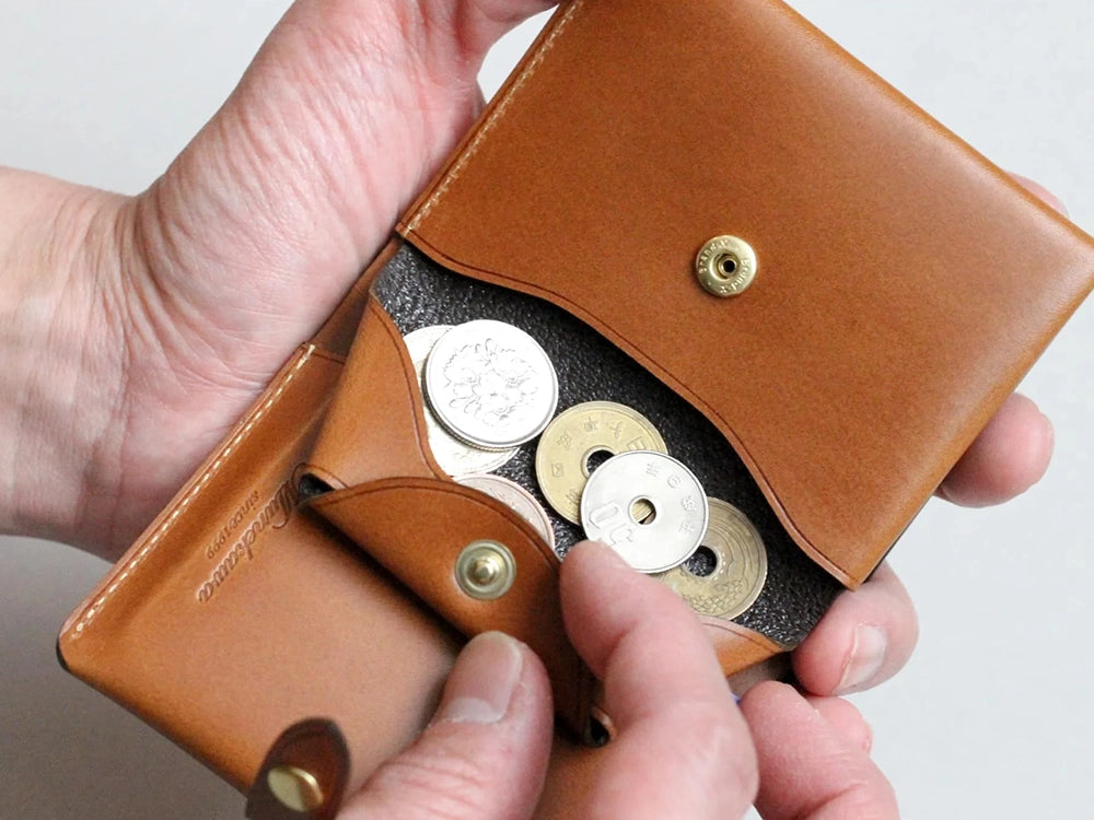 ミニ財布・コンパクト財布でよくある「取り出しにくい」小銭入れの問題を解消しています。