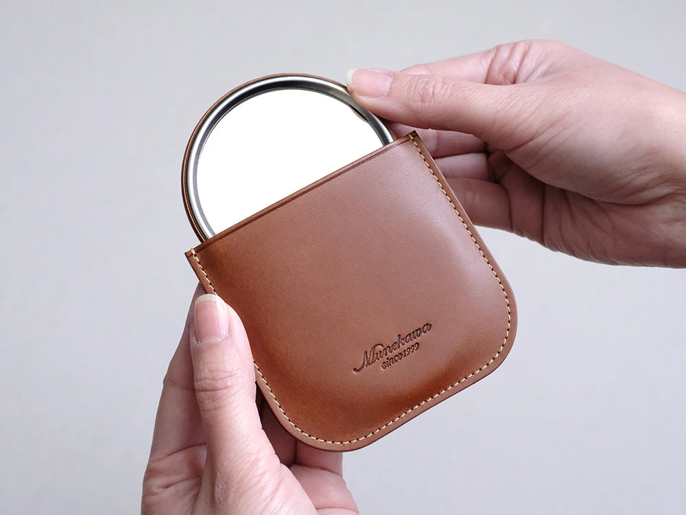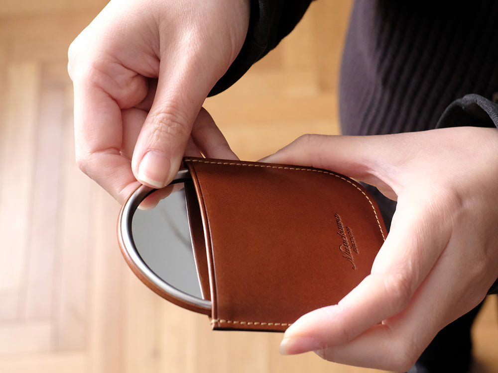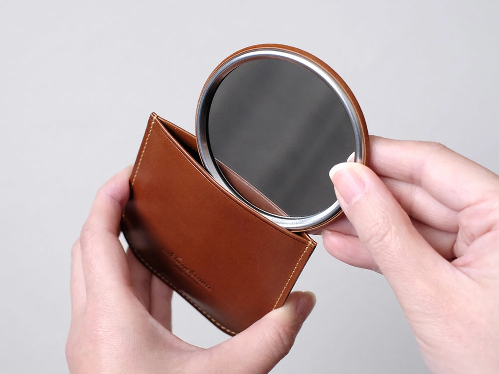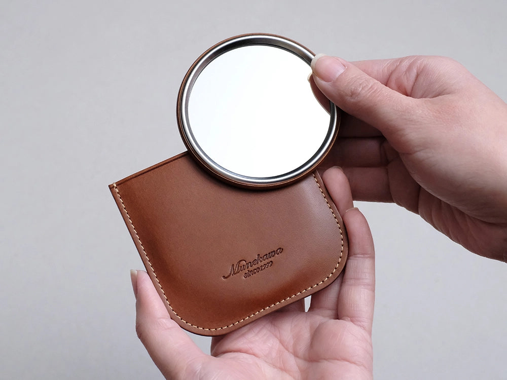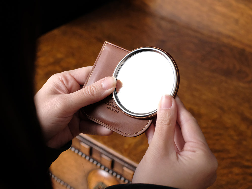『コンパクトな革製ミラー』オリジナルレザーケース付き