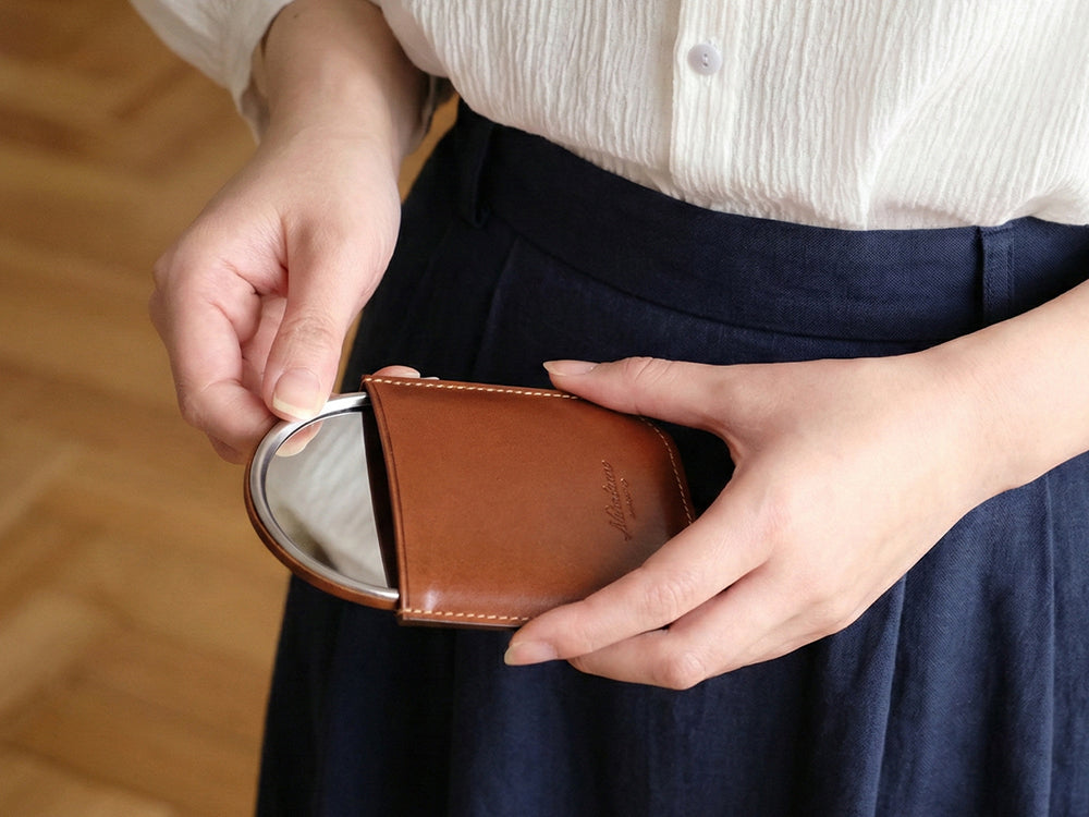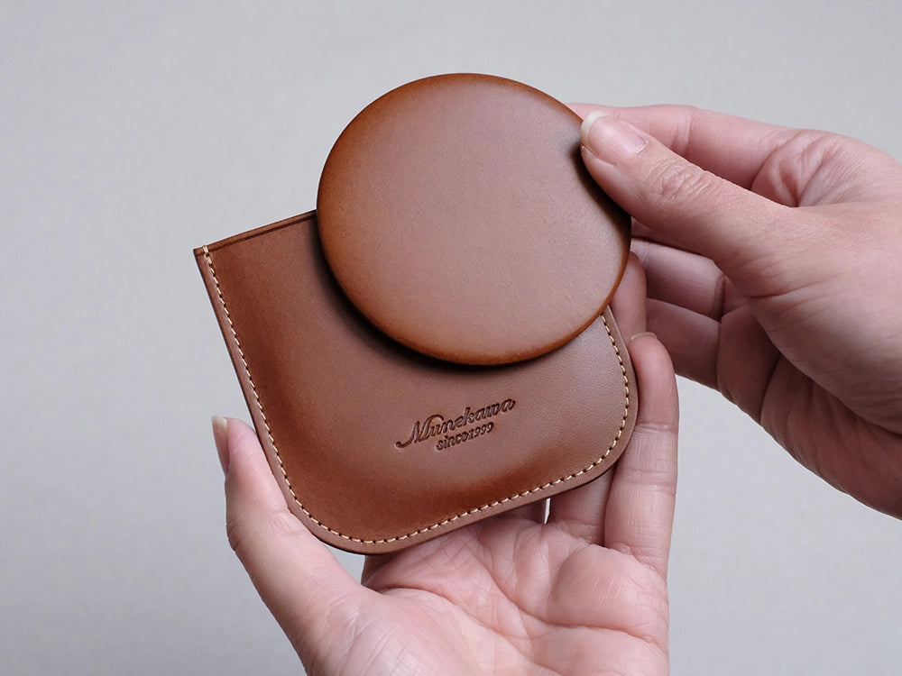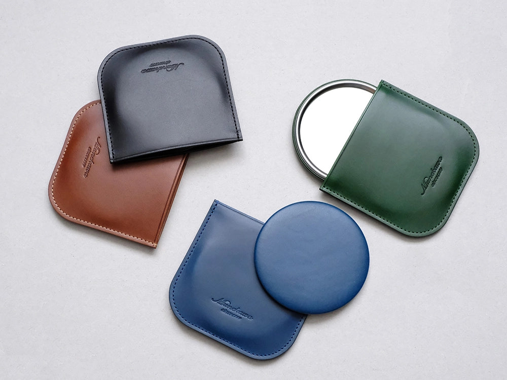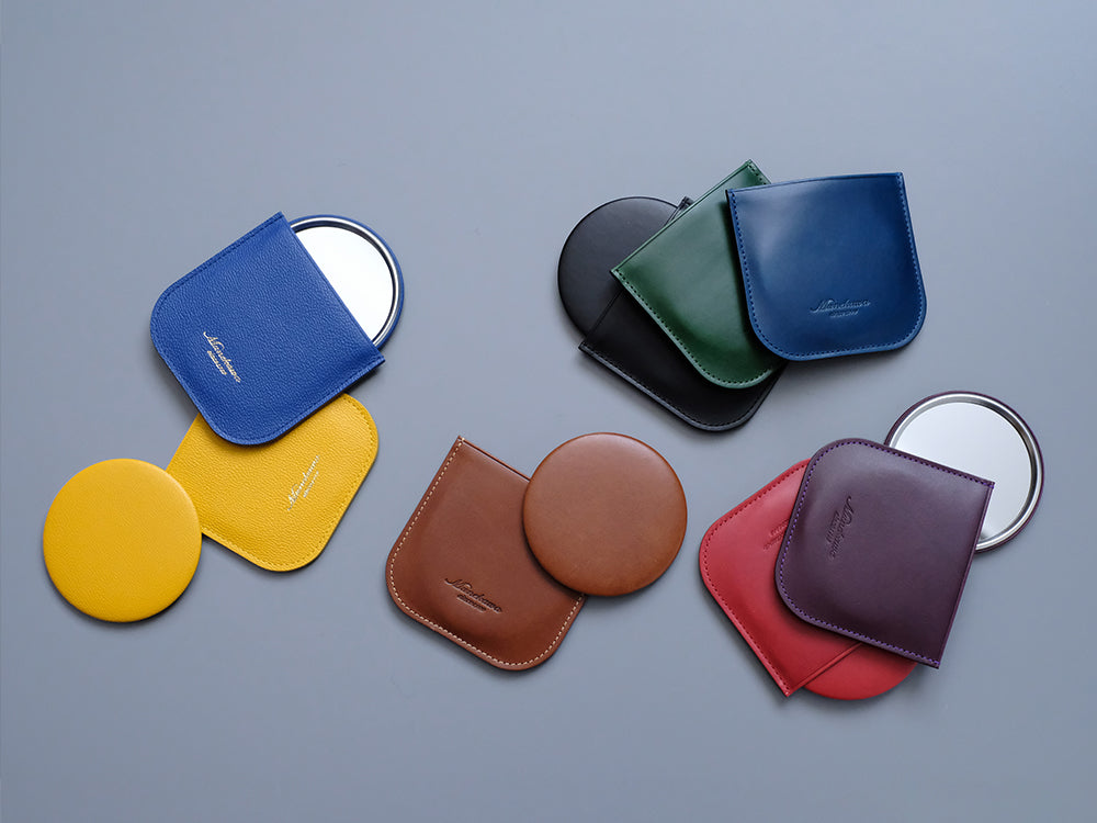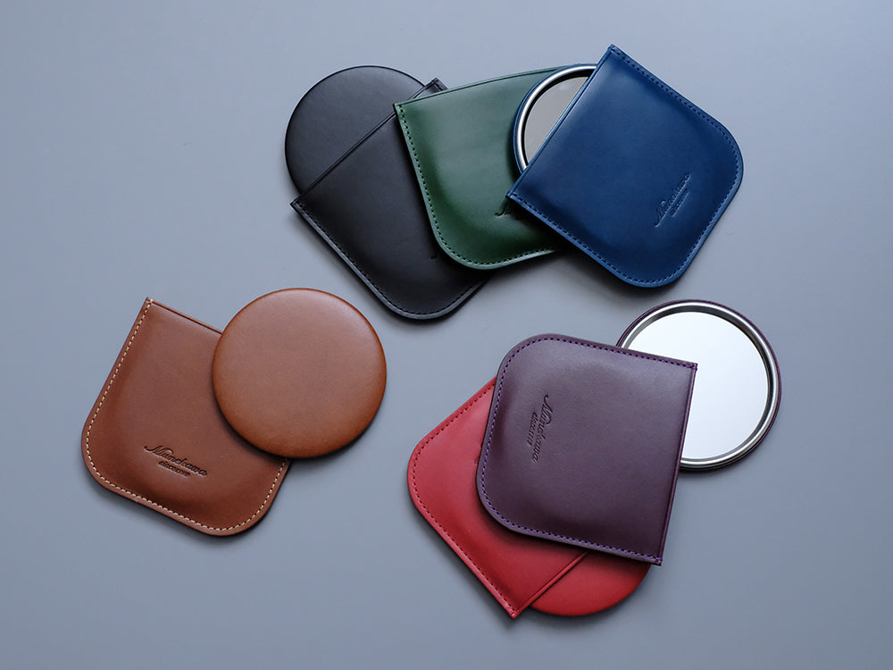 『コンパクトな革製ミラー』オリジナルレザーケース付き