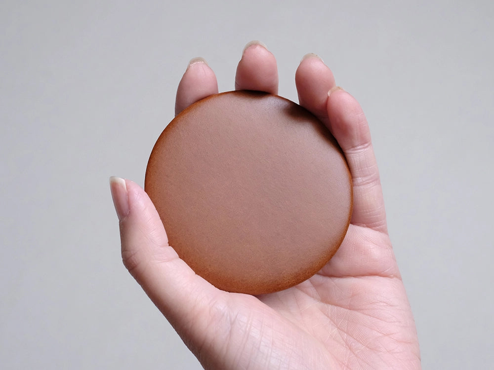 本製品は、クロムなめし製法で仕上げた牛革に型押し加工を施したレザーを使用しています。水に比較的強く、型押し加工が加わることで傷がつきにくいのが特長です。また、柔らかく軽量なため、日常使いしやすく、扱いやすさを重視する方に適しています。 経年変化が起こりにくく、使い始めの風合いを長く保てる点も魅力です。お手入れに手間をかけたくない方や、鮮やかな発色を楽しみたい方におすすめの素材です。