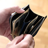 コンパクトなファスナー財布が欲しい、という要望から生まれたL字ファスナー財布 「Cram」は【詰め込む】という意味の通り、見た目よりも収納力を持ったミニ財布です。