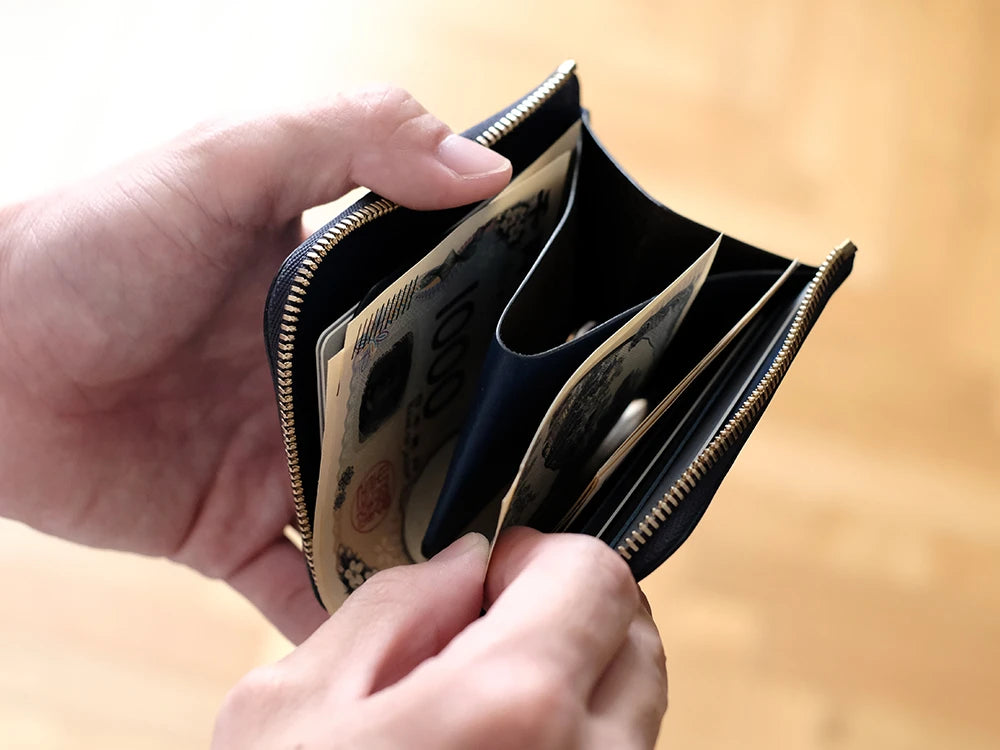 よく見るL字ファスナー財布は、紙幣がファスナーに挟まってしまうことがよくあります。