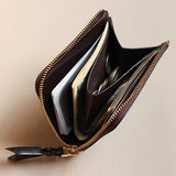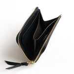 ファスナー財布の問題点は紙幣が挟まってしまう事。それを解決するためにお札を小銭入れ下にU字に差し込める構造にしています。