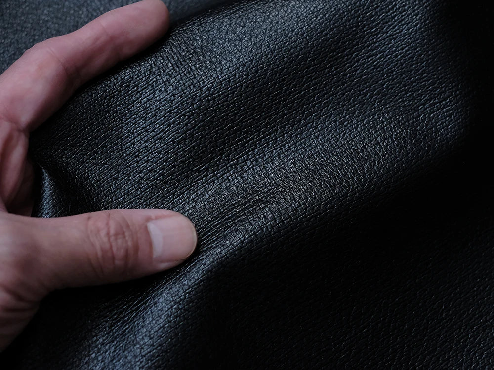 今回は裏地に使用するピッグスキンもブラックで製作しています
